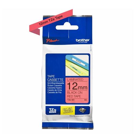 لیبل لمینت اورجینال TZe-431 با لیبل پرینترهای (P-Touch) برادر سازگاری کامل دارد و با رنگ متون مشکی و رنگ پس زمینه قرمز چاپ میشوند.این لیبل لمینت برادر برای استفاده در سطوح صاف نظیر پوشه ها و کلاسورها مناسب است و در برابر تابش مستقیم خورشید بسیار مقاومت دارد بوده و با ویژگی های دیگری نظیر ضد آب بودن کیفیت فوق العاده ای را در برابر مواد شیمیایی از خود نشان میدهد.